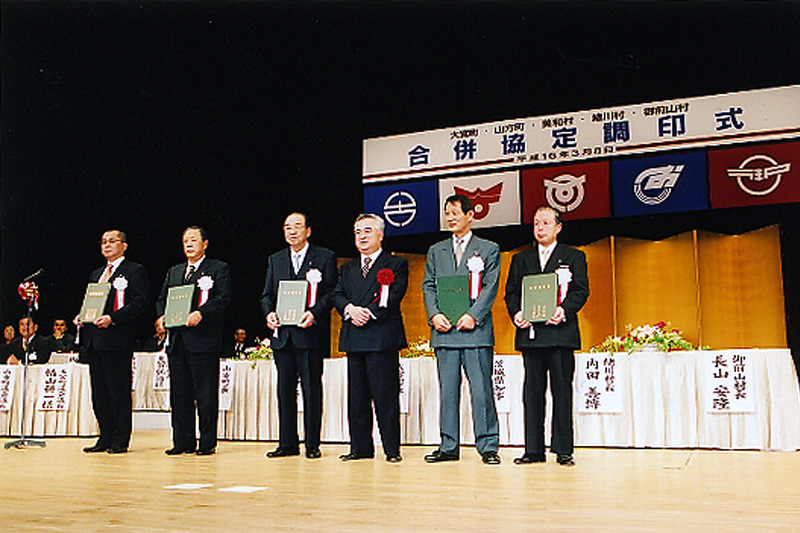 | 大宮町・山方町・美和村・緒川村・御前山村合併協定調印式(2004) | 大宮町・山方町・美和村・緒川村・御前山村合併協議会 |